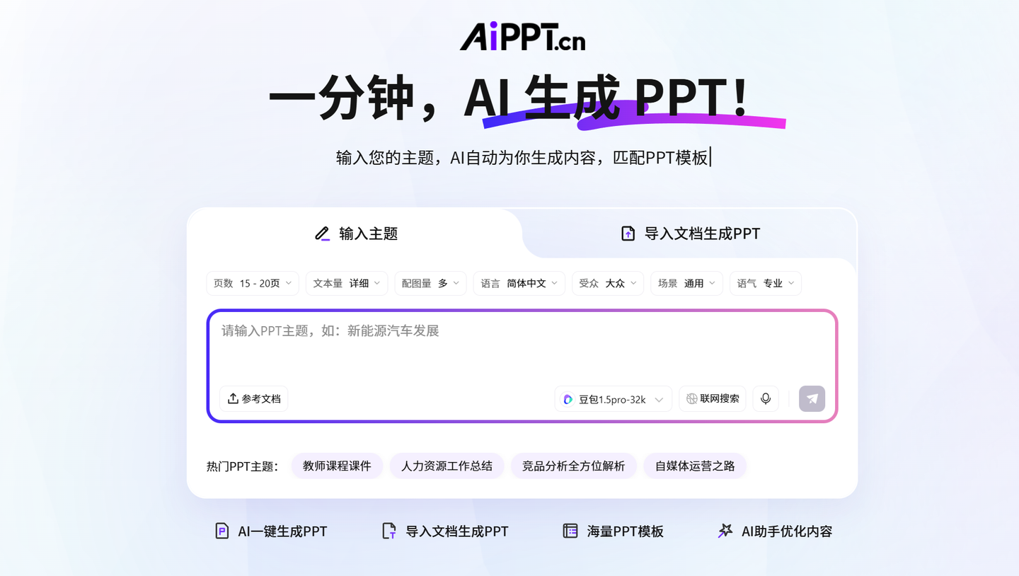 作为一个经常帮同学、朋友搞定各类自我介绍PPT的“老帮手”,我太懂新手做PPT的痛点了:不知道排版、配色踩坑、内容逻辑混乱,往往花大半天也做不出满意的效果。后来接触到自我介绍PPT一键生成工具,才算彻底解放双手。这些工具能靠AI或智能模板快速搭建框架、美化页面,新手也能轻松做出质感在线的作品。今天就把我实测过的8款好用软件分享给大家,每款都有专属优势,适配不同场景需求。AIPPT是我最早接触的自我