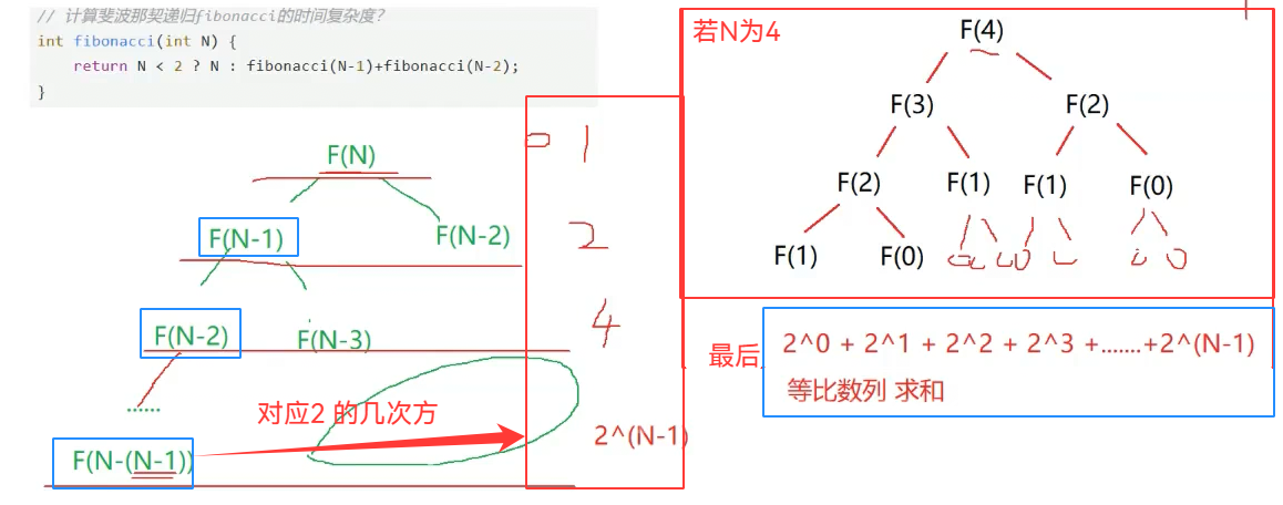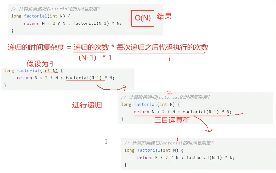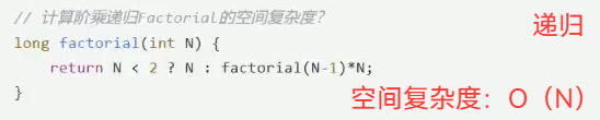 递归多少次,空间复杂度就是几(每递归一次,就要存一次N)
