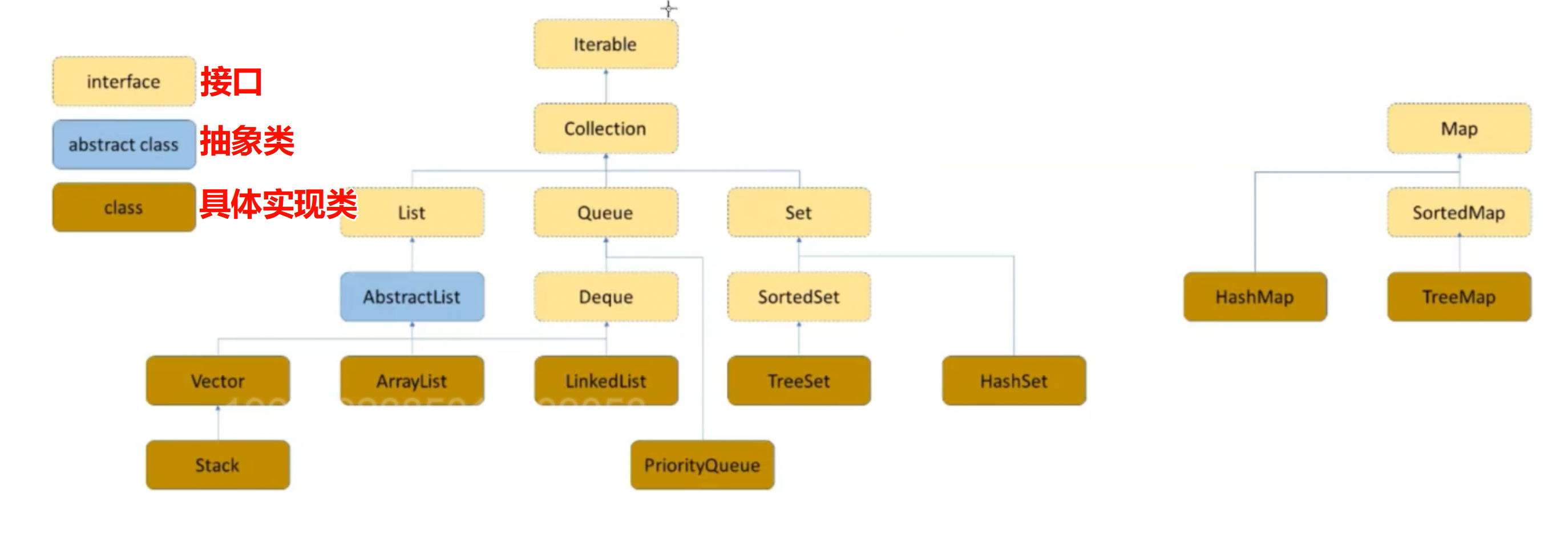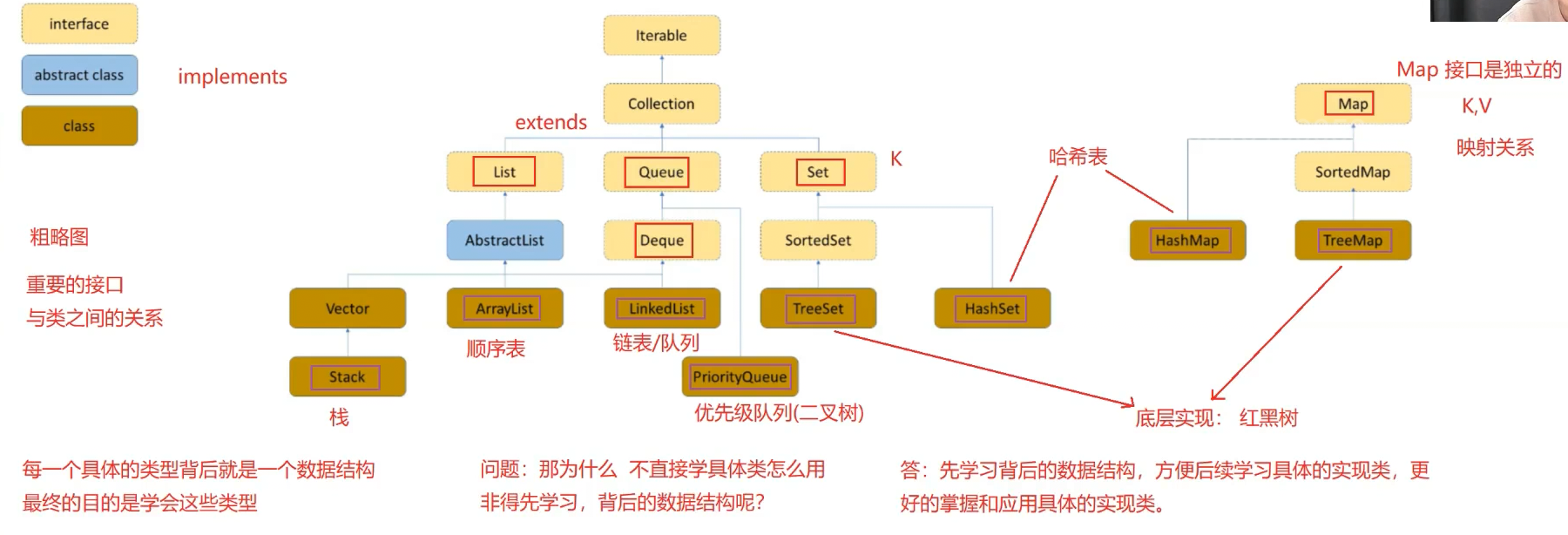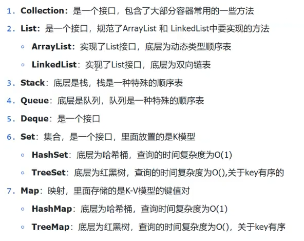 重要接口:【List,Queue、Set】(继承在Collection接口下)、Deque、Map(独立的)
