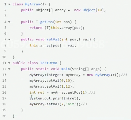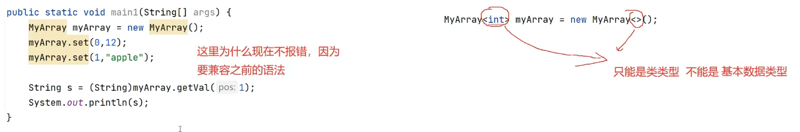 MyArray<Integer> list = new MyArray<>(); //可以推导出实例化需要的类型实参为 Integer