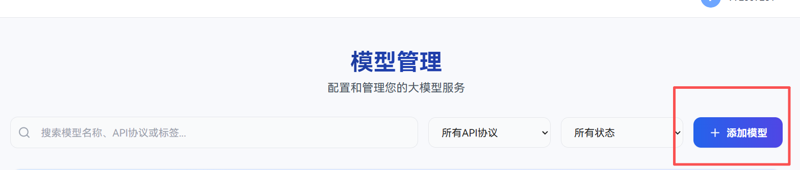我们点击右侧 模型管理 ,在这个界面上添加我们准备好的模型,我们需要准备