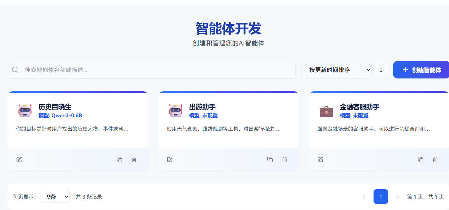 除了我们自己的智能体外,系统自带了两个智能体,感兴趣的话大家可以自己去了解