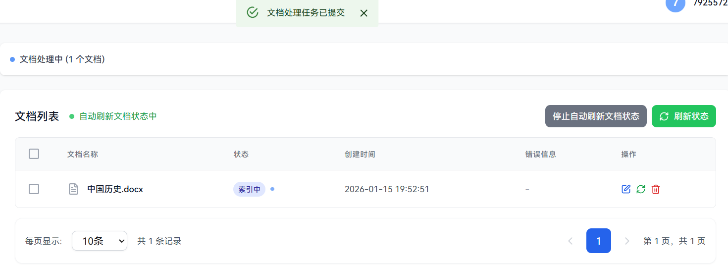 在创建完成之后,我们继续编辑这个知识库,我们需要往这里面放入我们准备好的文档,让它知识库里面能有东西