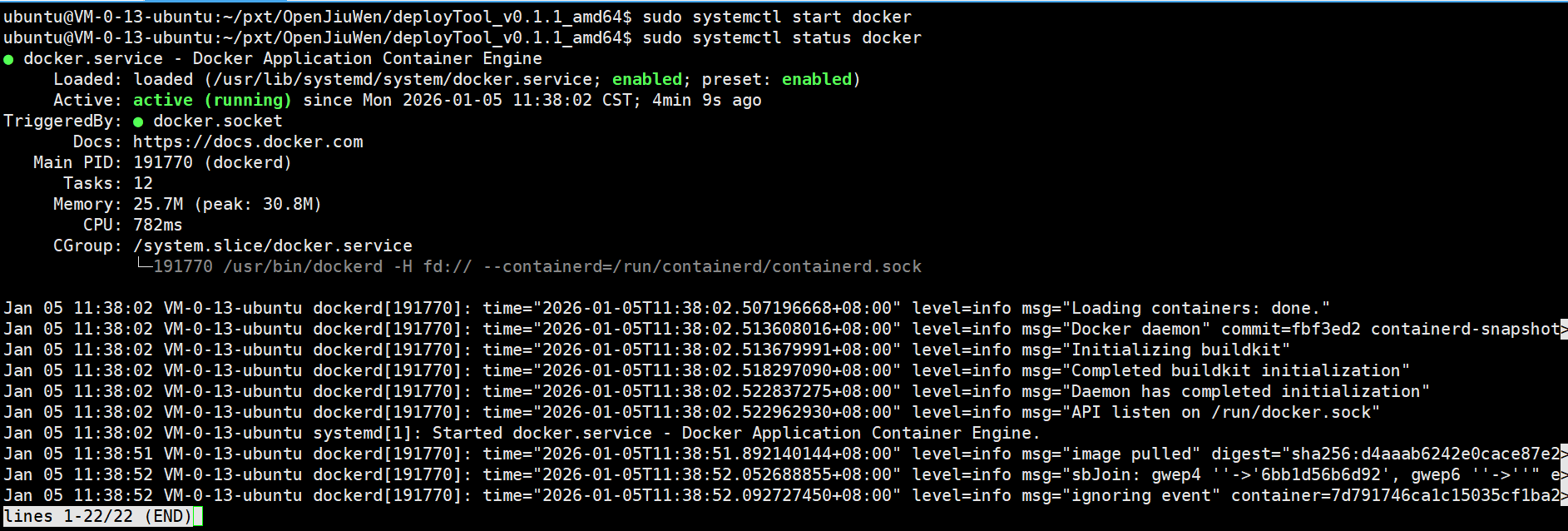 进入 deployTool_v0.1.1_xxx64 目录,输入以下命令确认 Docker 已启动: