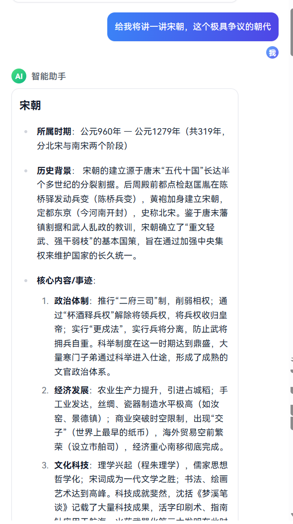 前言:随着大模型能力的提升,基于 AI 的知识型应用已经逐渐从“能聊几句”走向“可以真正使用”。在历史学习这一类场景中,用户往往希望获得的是连贯、可追问、有上下文逻辑的讲解,而不仅仅是零散的问答。