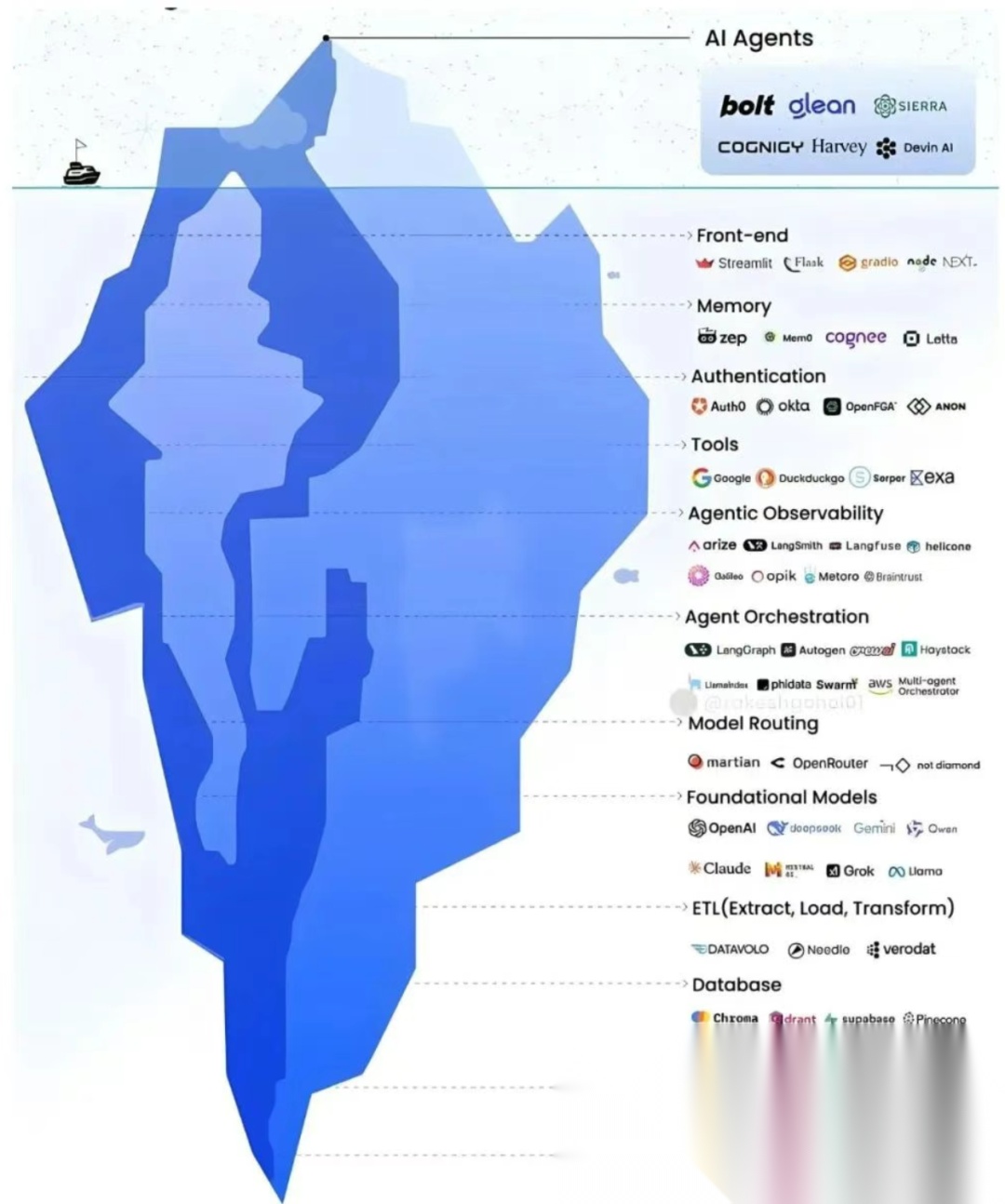 第一层是 CPU/GPU 提供商层。没有算力,所有的 AI 智能体都是空中楼阁。很多公司在这一层第一次体会到“钱烧得有多快”,一家做视频内容智能审查的企业,当初以为几台 GPU 就能撑住业务,结果发现每天要处理的海量视频片段,几乎把集群烧穿。最后不得不转向公有云,灵活调度 Azure 和阿里云的算力资源,才让系统平稳运转。算力不是选一块显卡那么简单,而是涉及采购、成本优化和低延迟执行的长期平衡。