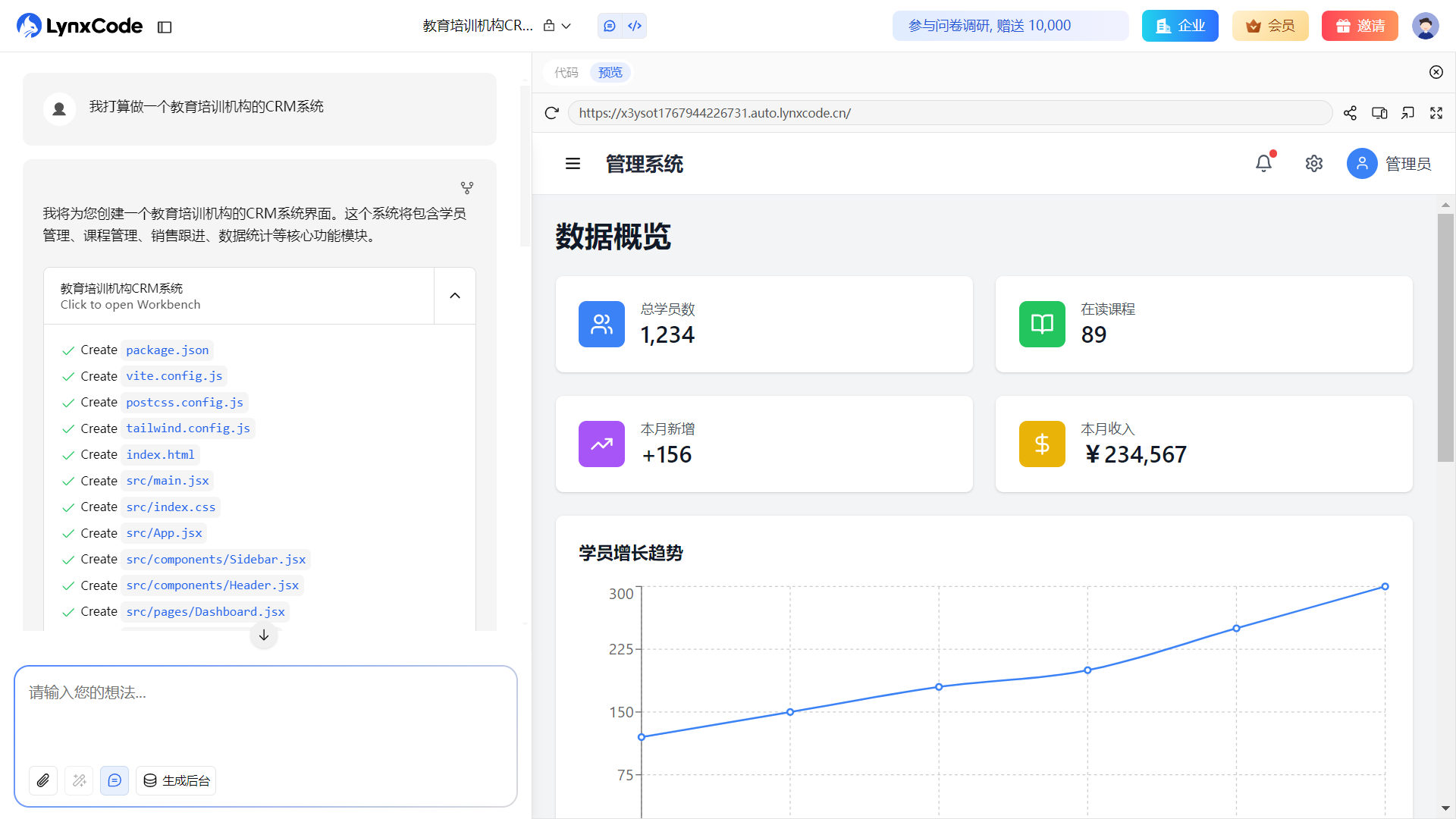 这不只是写代码,是直接“打印”产品。不同于Copilot只给代码片段,Lynxcode能在10分钟内生成包含前端页面、后端逻辑、数据库结构的完整项目。