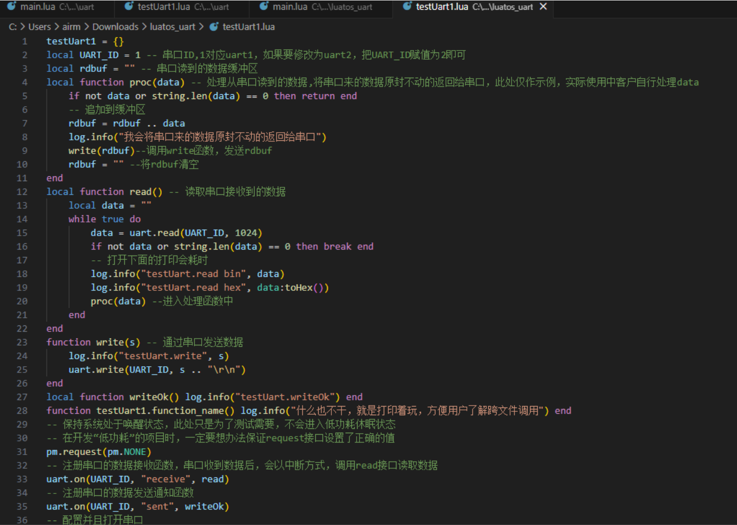 最后整个testUart1.lua就被我们改造成了这样