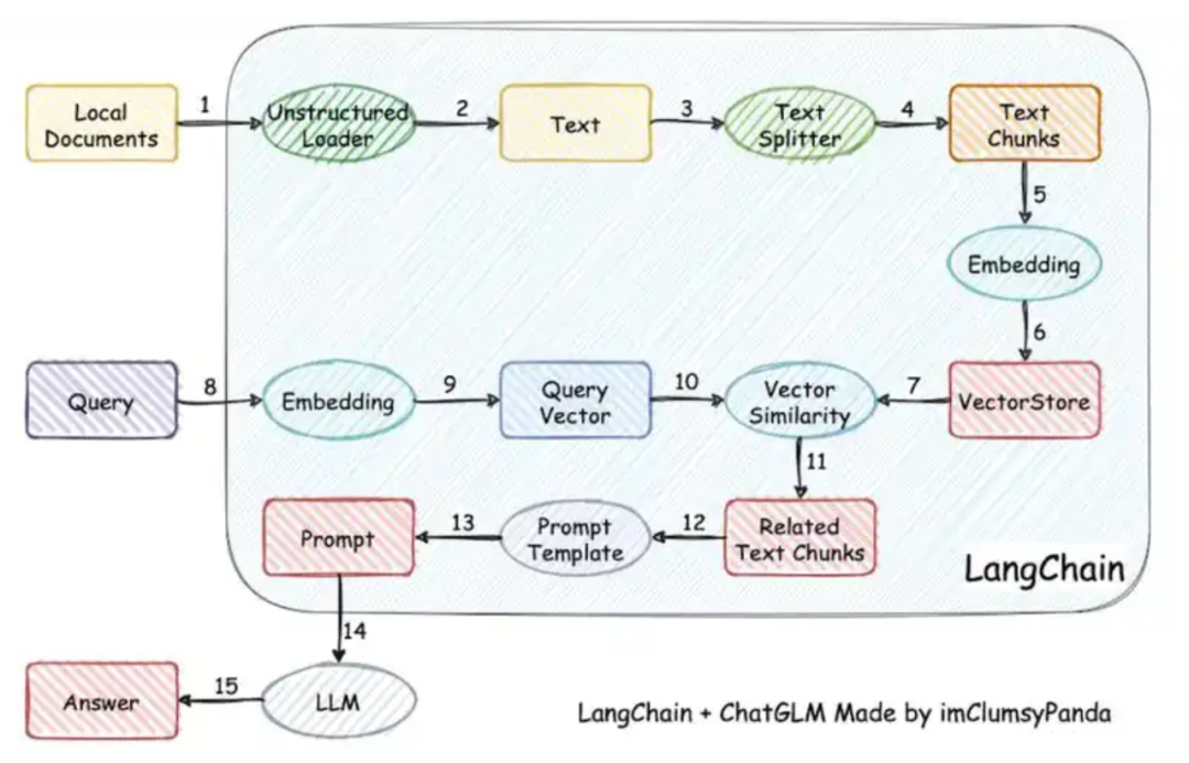 主要是将私域数据向量化后构建索引并存入数据库的过程。包括:数据提取、文本分割、向量化、数据入库等环节。