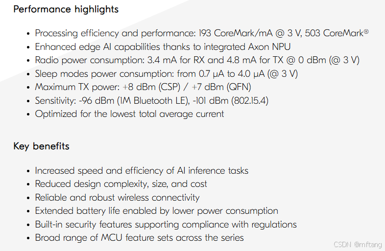 处理效率和性能:193 CoreMark/mA(3 V 时),503 CoreMark®