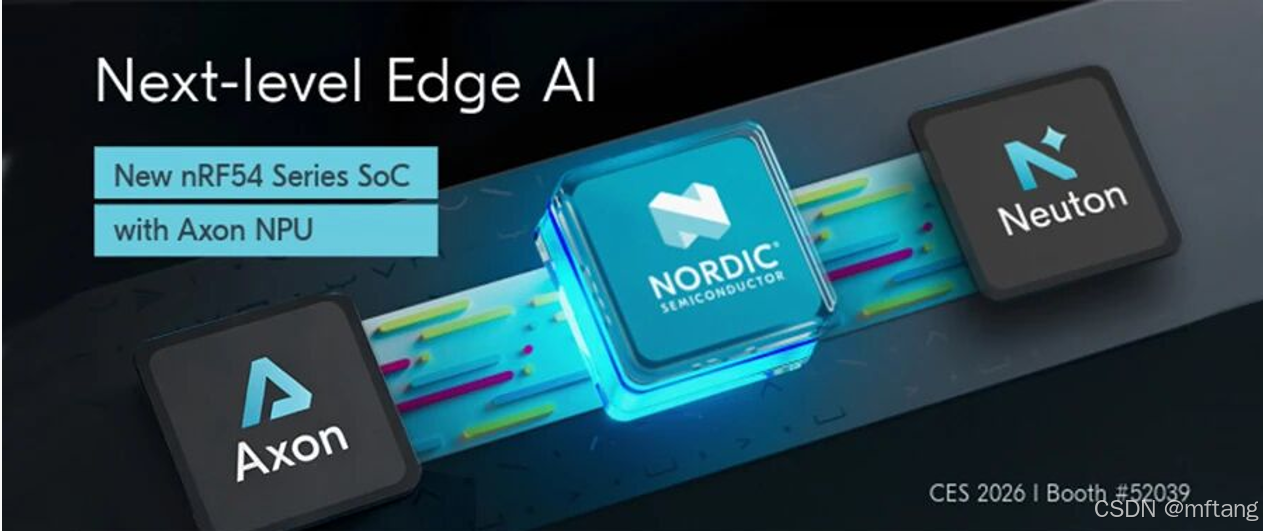 Axon NPU是Nordic Semiconductor为nRF54LM20B芯片开发的专用AI加速器,其核心是专为超低功耗物联网设备设计的硬件神经网络处理器。简单来说,Axon NPU通过硬件级的高效AI计算,让小型、电池供电的物联网设备也能在本地(无需依赖云端)快速、低耗地处理AI任务,是实现毫秒级响应、保护隐私、并延长电池寿命的关键。
