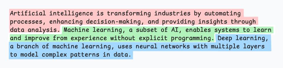 - 粗粒度切分:按段落、标题或主题初步划分大块。
