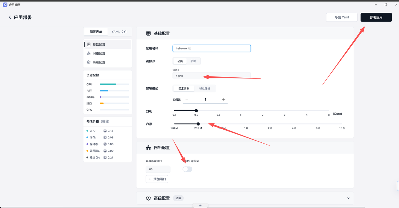 屏蔽无关的复杂性 我只需要关心镜像、端口、CPU 这些业务核心概念。底层的 Kubernetes、网络、存储等复杂性被完全屏蔽,极大地降低了我的认知负荷。当应用出现内存溢出(OOM)时,系统会自动恢复,而不是像传统云主机那样直接宕机。
