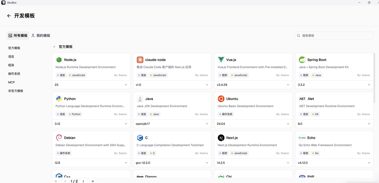 一键创建云端环境:我只需选择 Node.js 模板,几秒内就获得一个配置完善的开发环境,彻底告别了本地繁琐的依赖安装。