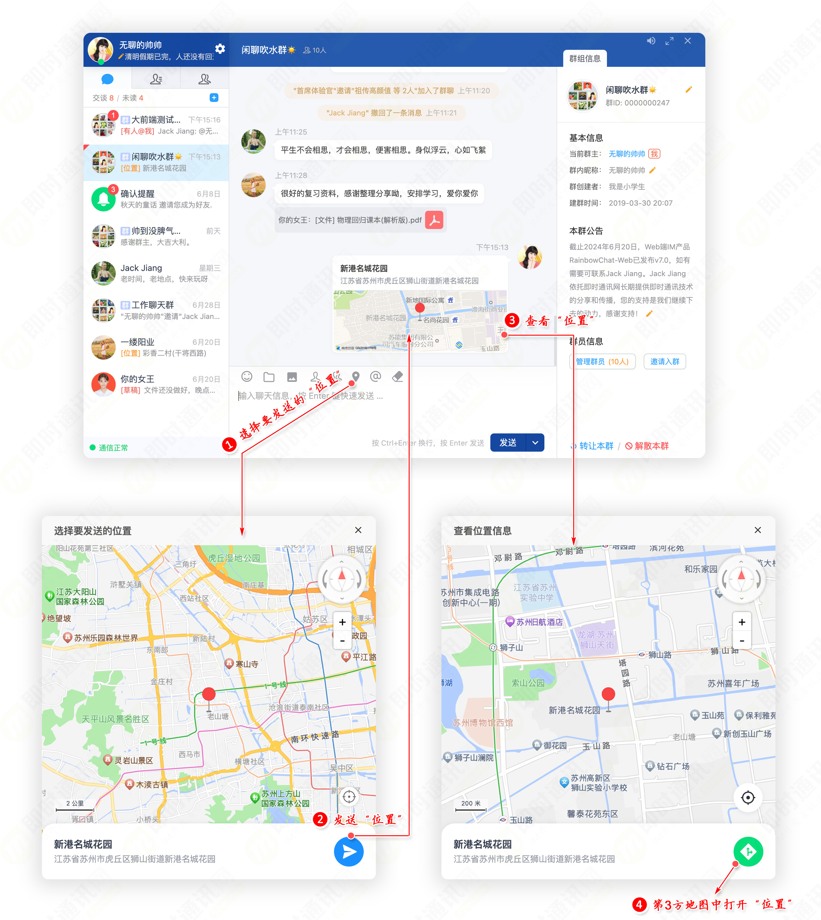 13)消息收发互通:实现了与RainbowChat-APP产品的无缝消息互通。
