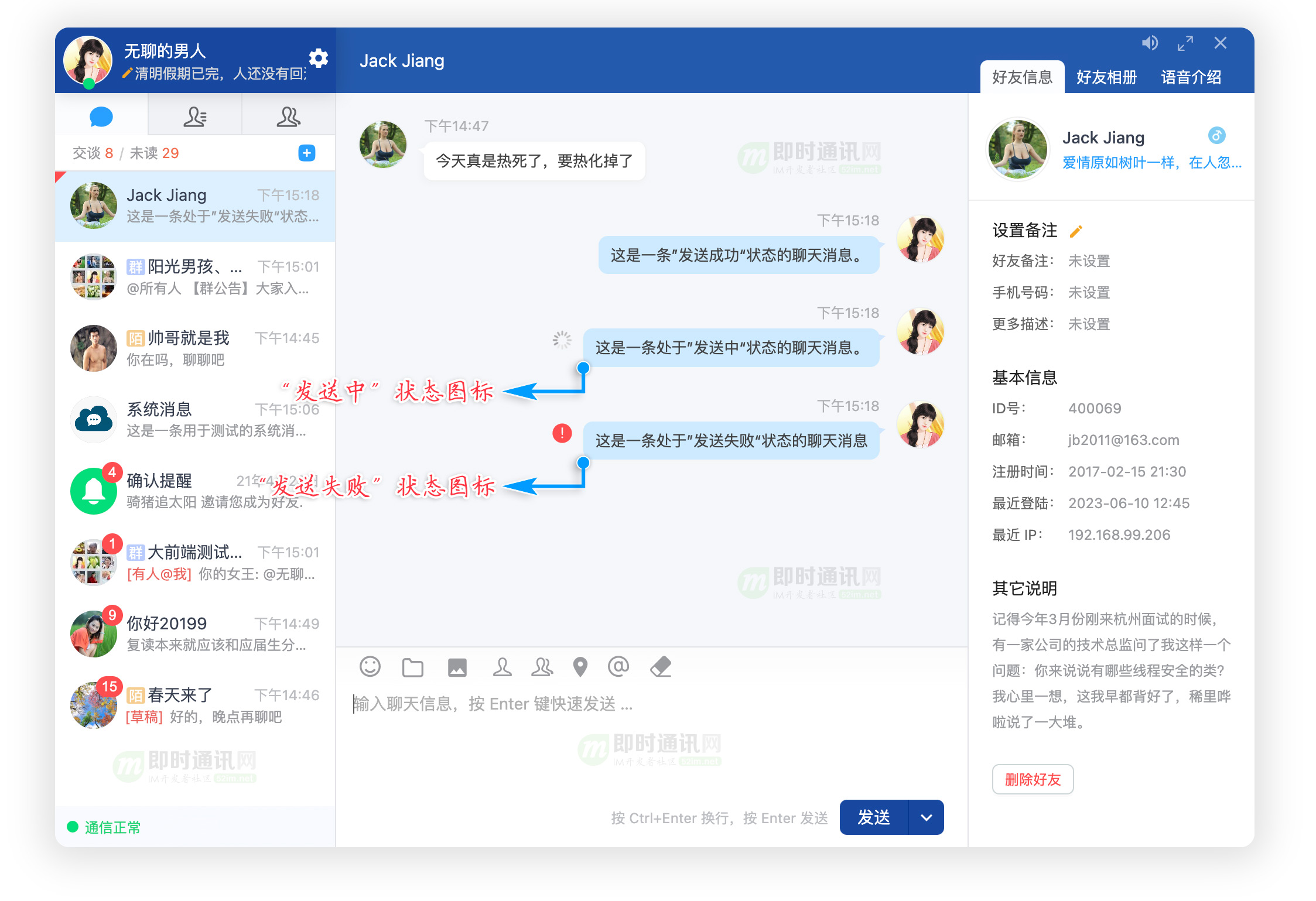 聊天区上方聊天对象信息显示:(查看视频)