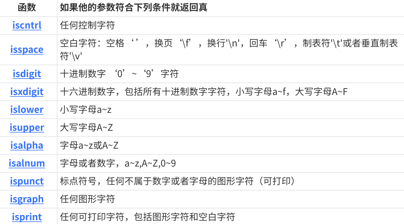 以下是常见字符分类函数