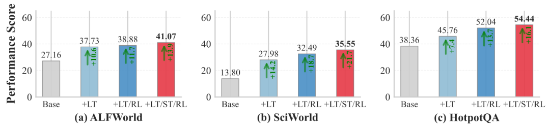 图8:LTM、STM和RL组件的消融研究(Qwen2.5-7B)