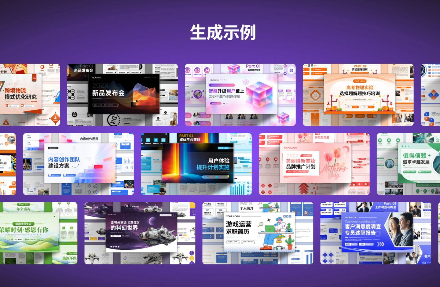 - 品牌元素适配:支持上传企业LOGO、品牌色卡,生成的PPT可统一融入品牌元素,保持企业视觉形象的一致性