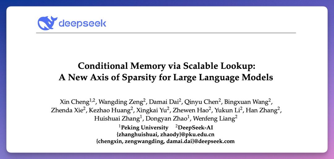 DeepSeek 与北大合作的 Engram 论文,梁文锋署名。