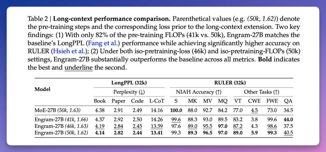 除了推理,Engram 在长上下文任务上也有显著优势。