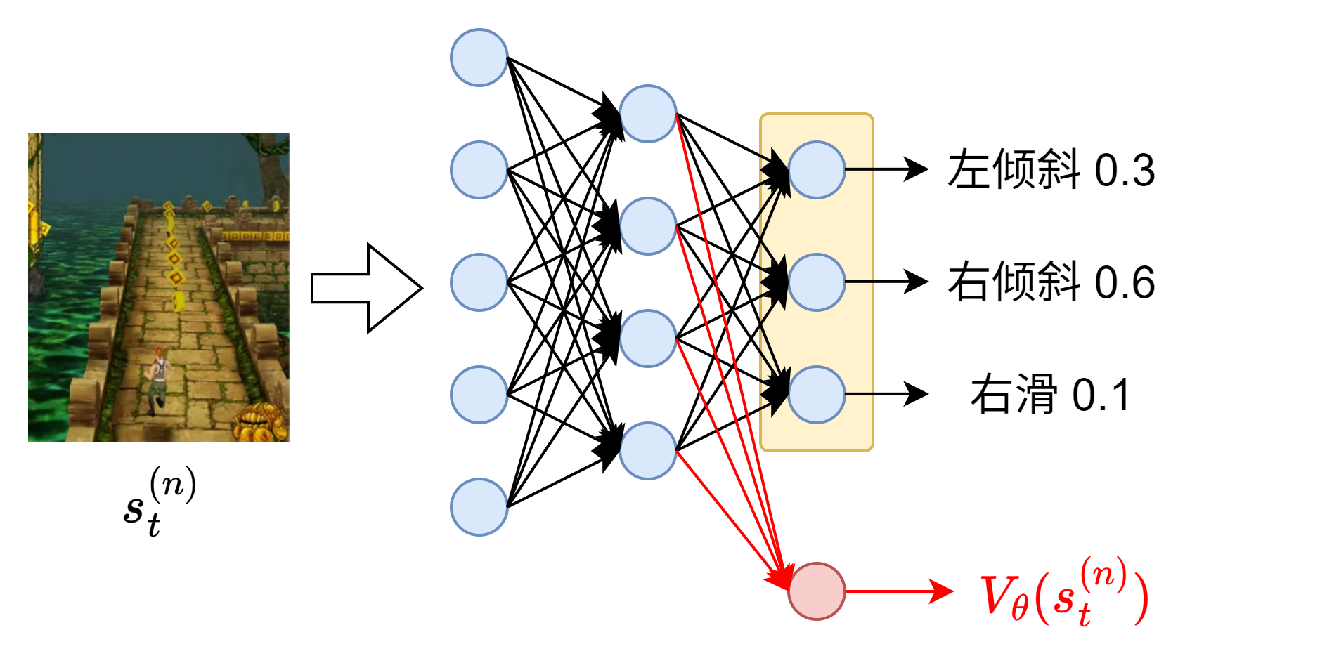 A ( s t , a t ) = Q π ( s t , a t ) − V ϕ ( s t ) . A(s_t, a_t)=Q_\pi(s_t,a_t)-V_\phi(s_t). A(st,at)=Qπ(st,at)−Vϕ(st). 上述公式为优势函数(Advantage Function)。用来衡量在当前状态 s t s_t st下,做这个动作 a t a_t at比平均表现好多少。 V ϕ ( s t ) V_\phi(s_t) Vϕ(st)是 Q π ( s t , a t ) Q_\pi(s_t,a_t) Qπ(st,at)的期望,即为该状态下所有可能动作的加权平均得分 V ϕ ( s t ) = ∑ a ∈ A π θ ( a ∣ s t ) Q π ( s t , a ) \displaystyle V_\phi(s_t)=\sum_{a\in\mathcal{A}}\pi_\theta(a|s_t)Q_\pi(s_t,a) Vϕ(st)=a∈A∑πθ(a∣st)Qπ(st,a)。