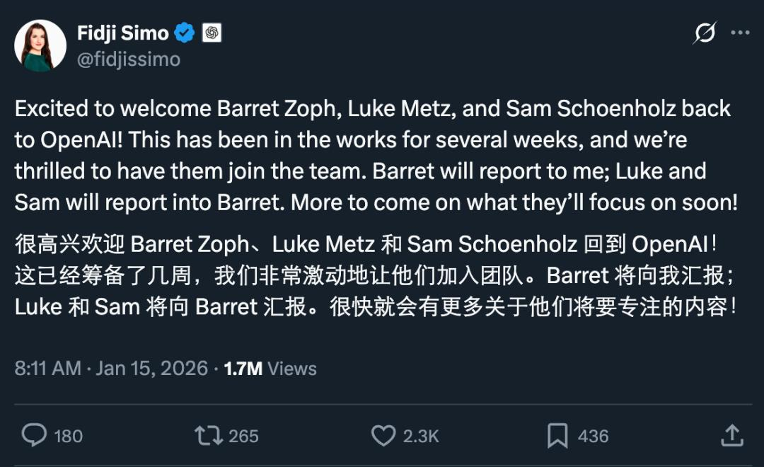 关于回归原因,业内流传两种说法:一是初创公司在算力、资金上难以支撑技术愿景,二是OpenAI内部重组后启动核心人才回流策略。此次事件引发行业对初创AI实验室生存现状的讨论,有观点认为,头部企业在资源储备上的优势,可能进一步加剧人才集中化趋势。