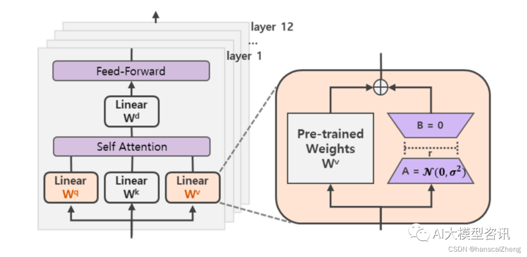 - 保持偏置层归一化可训练,因为它们对模型的适应性至关重要,并且不需要低秩适应。