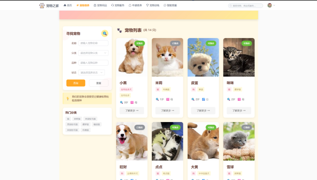 从技术实现角度,本项目将展示如何将先进的人工智能技术与宠物服务领域深度结合。通过计算机视觉技术,系统能够对上传的宠物图片进行智能识别,判断品种、年龄、健康状况等;基于机器学习算法,系统可以分析宠物行为数据,提供个性化的训练方案和健康建议;借助自然语言处理技术,系统能够理解用户需求,生成专业的养护指导和问题解答。这些智能化功能的实现,将有效降低宠物养护的专业门槛,提升养宠体验。