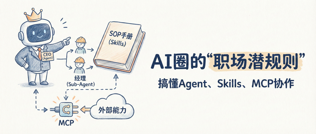 最近和做AI的朋友聊天,他甩给我一堆概念:Agent、Sub-Agent、Skills、MCP……我当场就懵了。