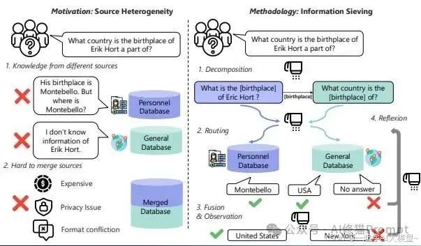 现在的RAG(检索增强生成)系统。您给它一个简单直接的问题,它能答得头头是道;可一旦问题需要稍微拐个弯,或者知识源一复杂,它就立刻“拉胯”,要么返回一堆不相干的东西,要么干脆就开始一本正经地胡说八道。今天来自罗格斯大学的研究者带来了DeepSieve,这是一个专为处理异构知识源的RAG框架,让RAG系统真正“学会思考”。
