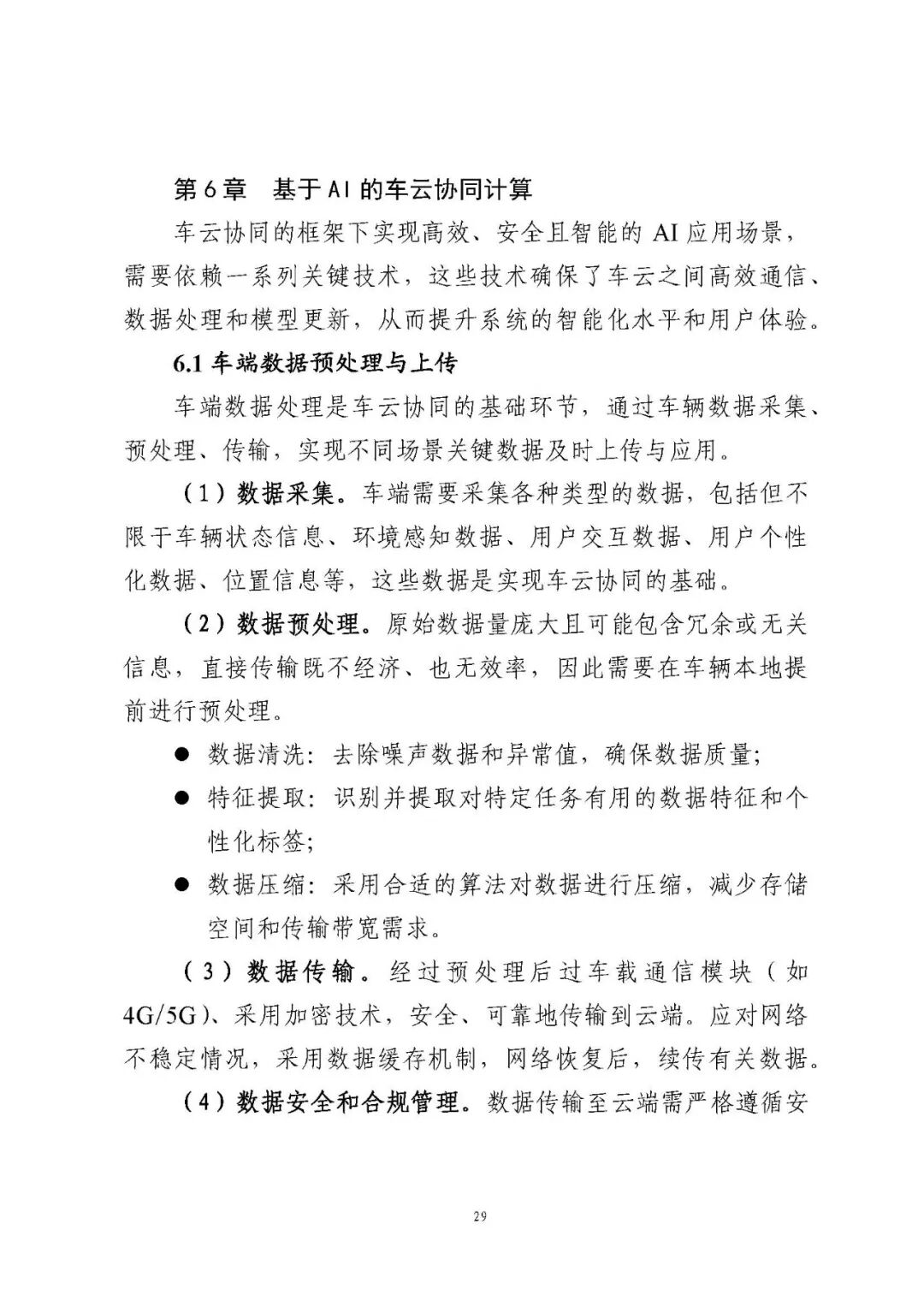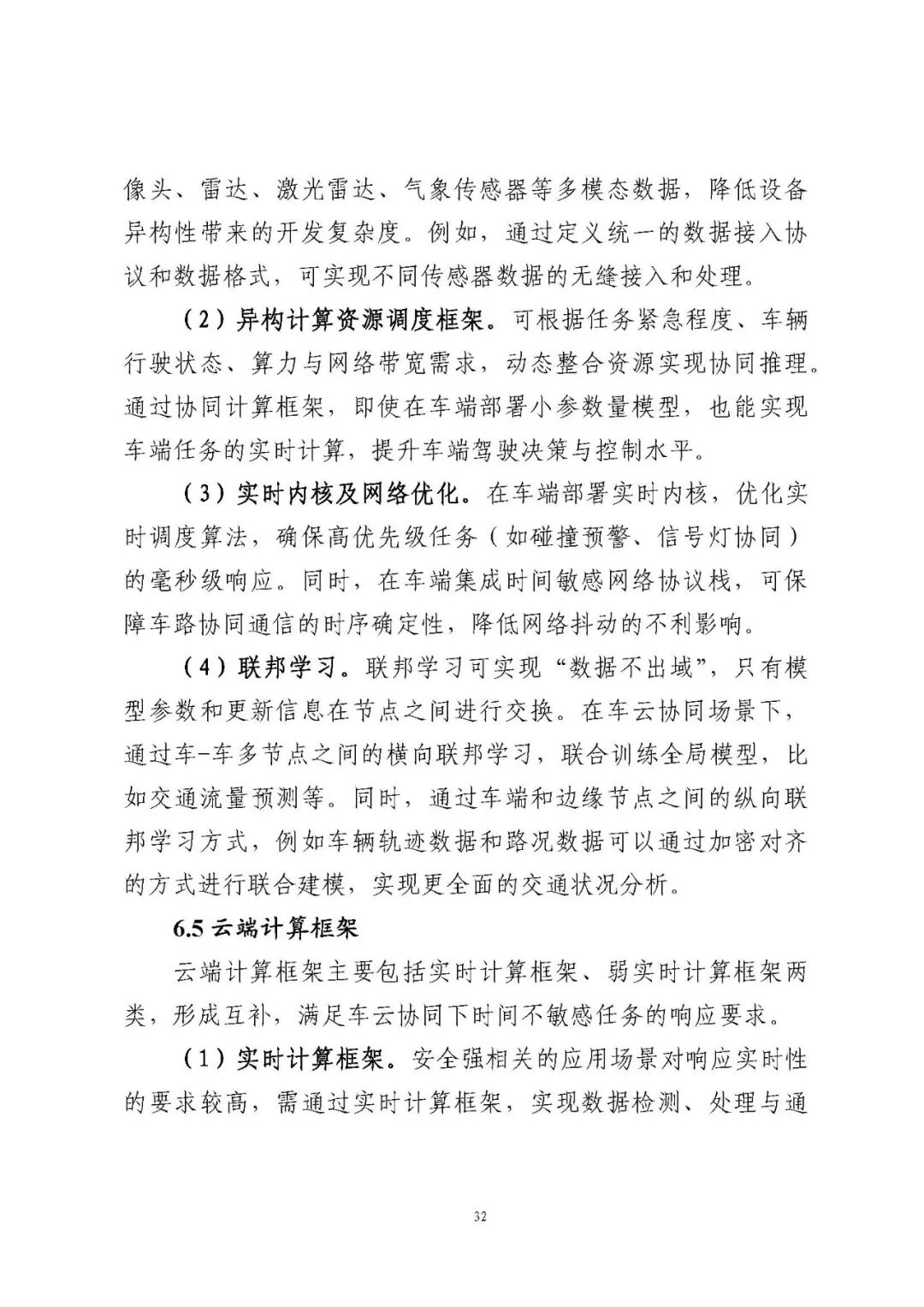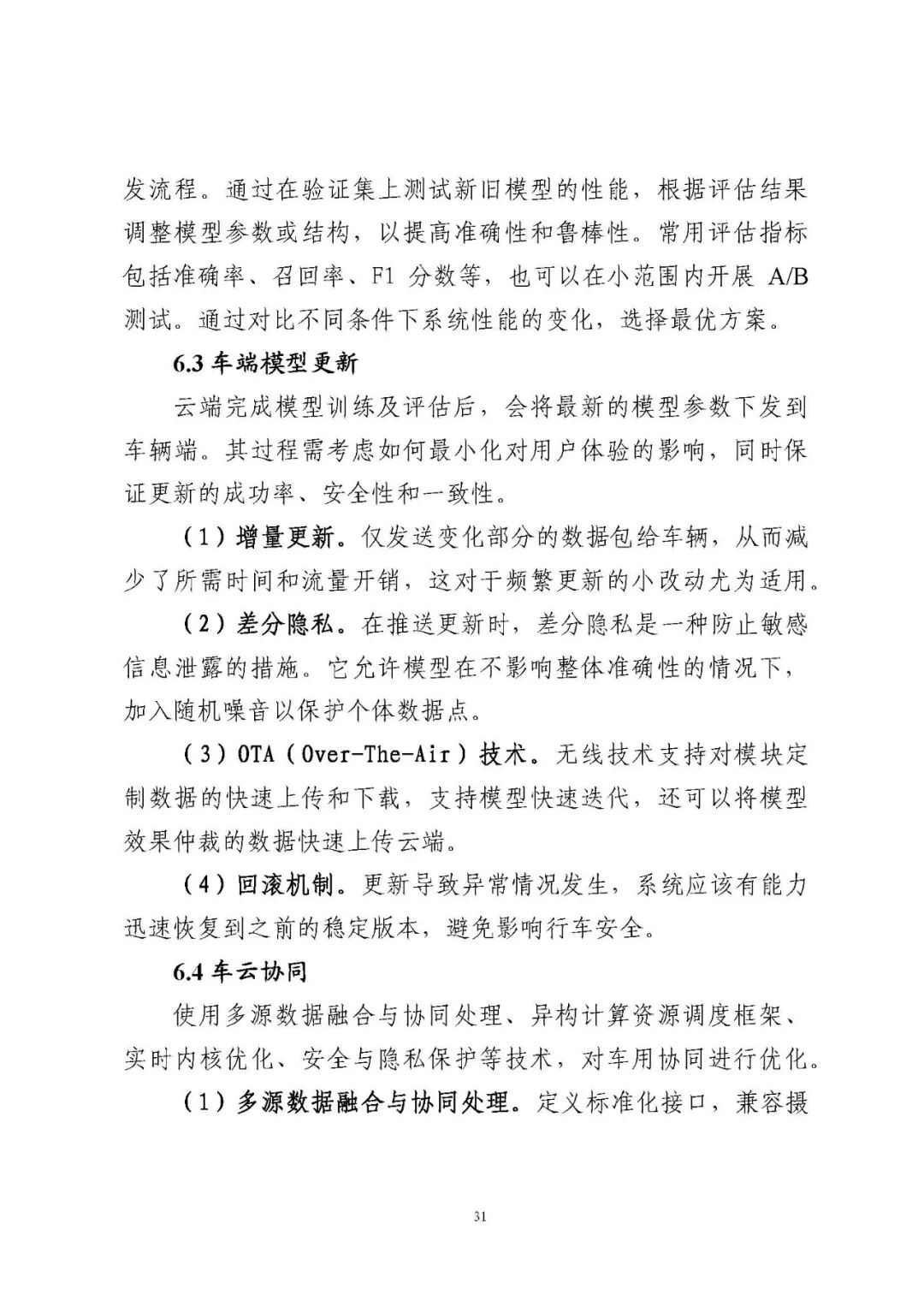 车端完成数据采集、预处理、加密传输;云端进行数据存储、模型训练与评估;通过增量更新、OTA 技术等实现车端模型更新;借助多源数据融合、异构计算资源调度、联邦学习等技术优化车云协同,云端还设有实时和弱实时两类计算框架,满足不同任务需求。