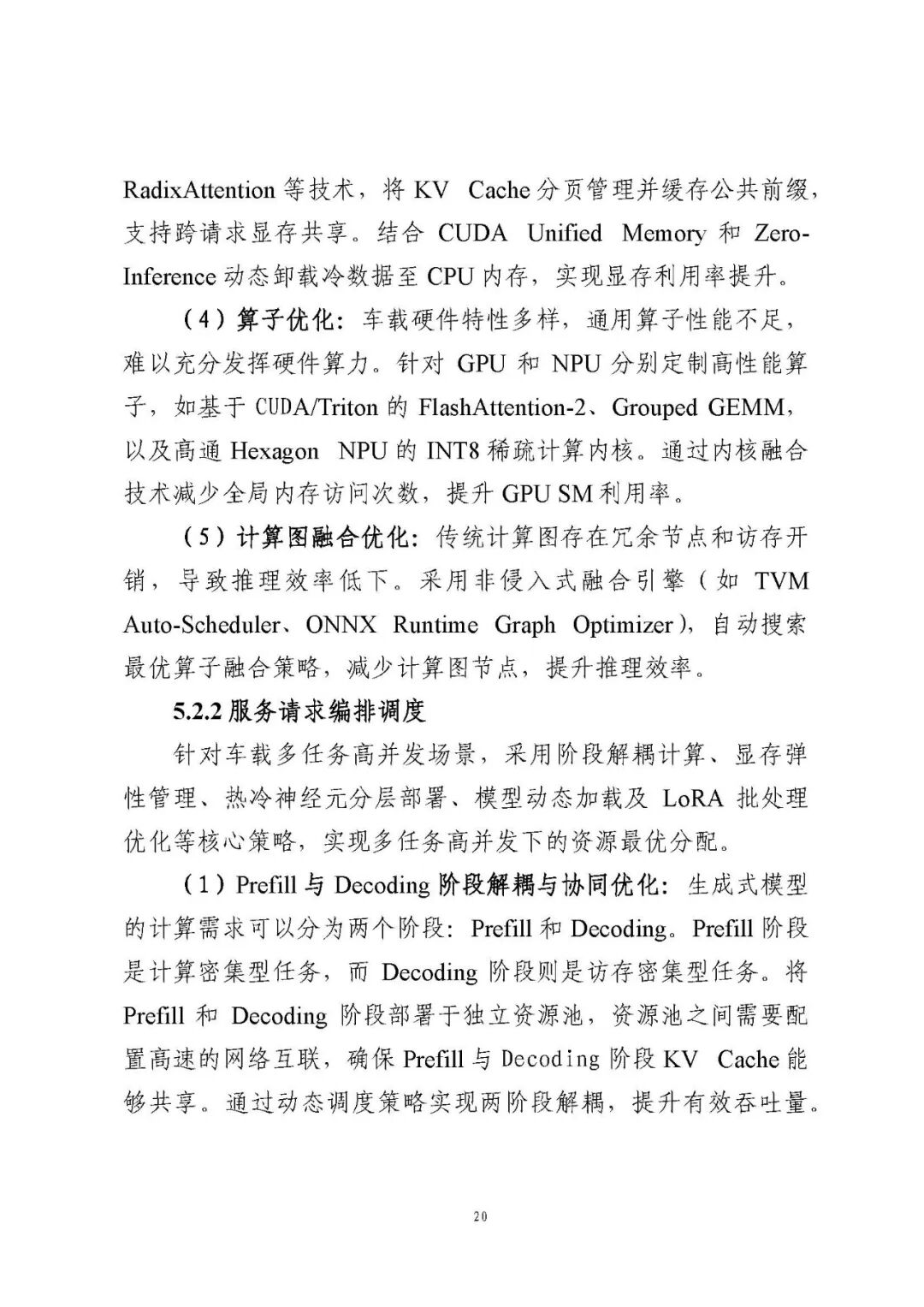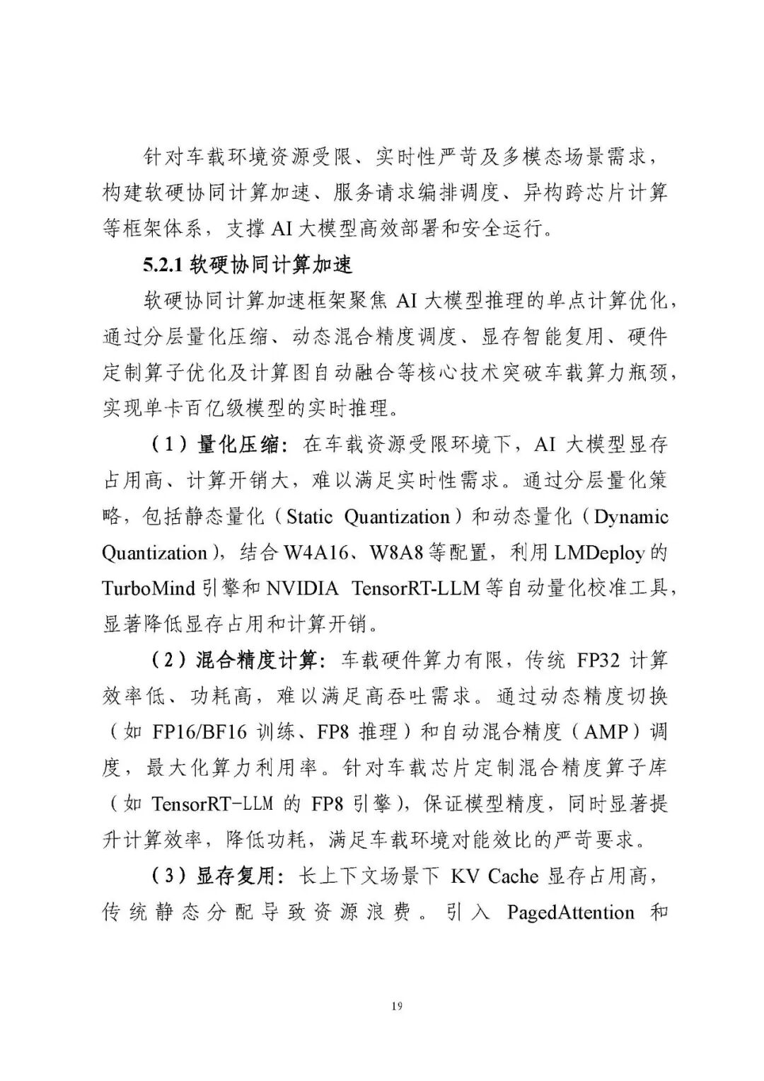 构建软硬协同计算加速、服务请求编排调度、异构联合计算等框架,通过量化压缩、混合精度计算、任务调度优化、跨域算力协同等技术,突破车载资源限制,支撑 AI 大模型高效部署和安全运行。