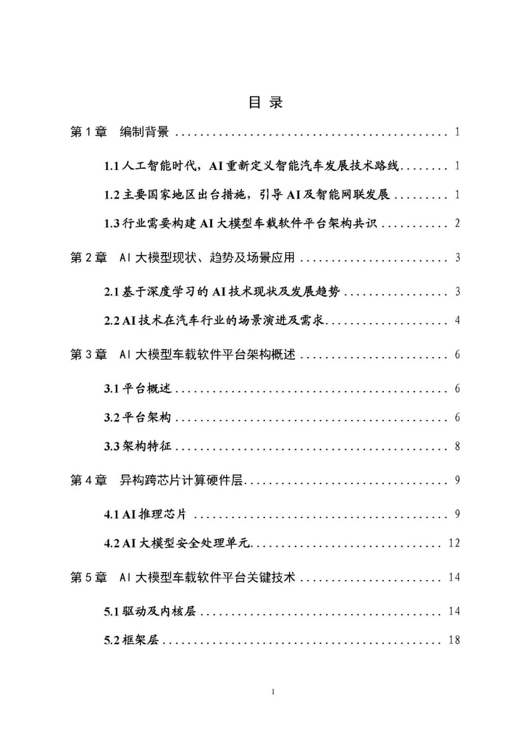 在人工智能快速发展的当下,AI 大模型逐步应用于汽车领域,重塑智能汽车发展技术路线,推动汽车从传统交通工具向智能终端转变。全球主要国家和地区纷纷出台相关措施,引导 AI 及智能网联汽车产业发展。然而,当前行业缺乏统一的车载软件平台架构,不同平台在技术架构、接口、数据等方面存在差异,增加了开发难度与成本,阻碍了 AI 技术在汽车领域的应用进程,因此亟需构建 AI 大模型车载软件平台架构共识。