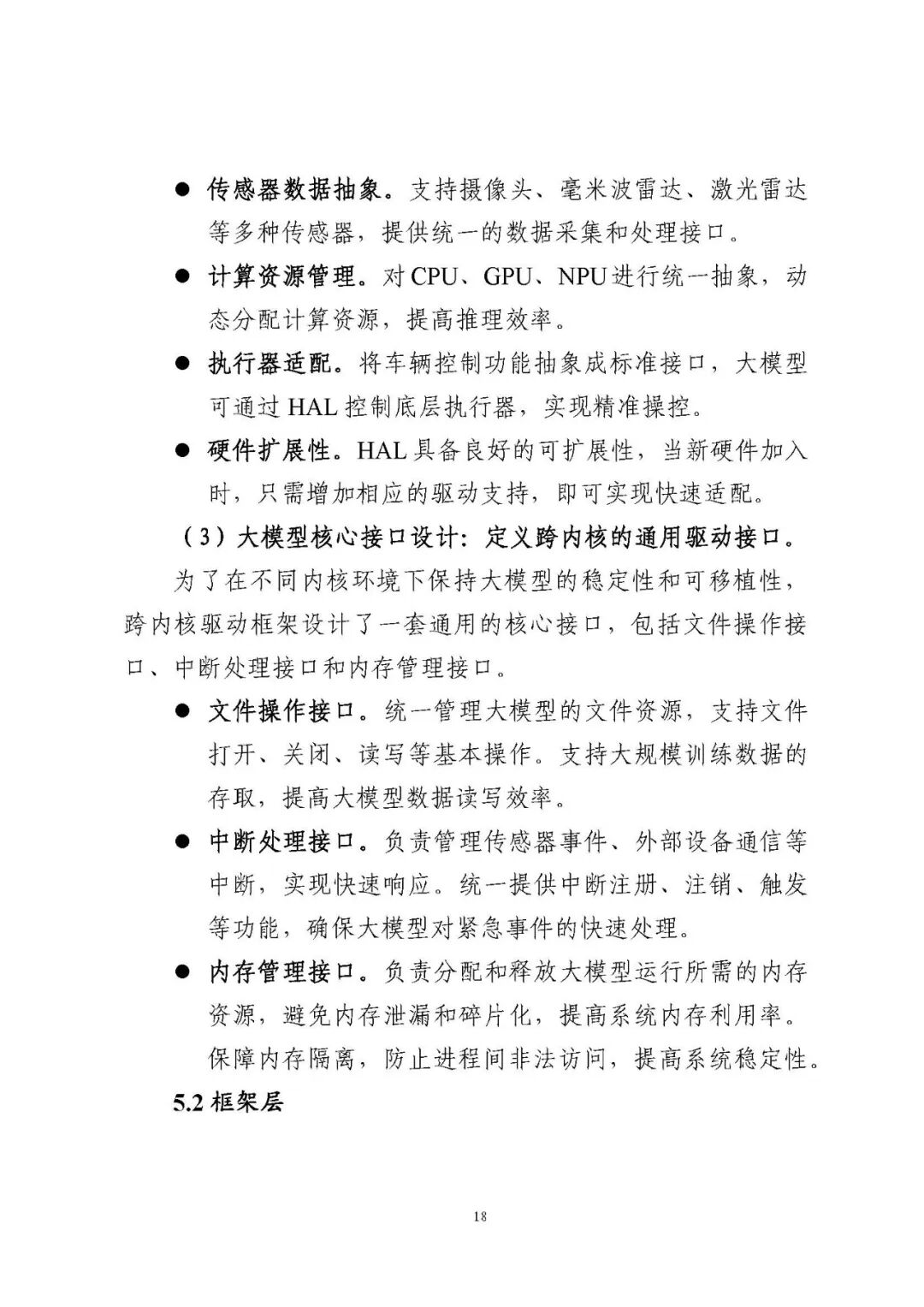 包含大模型智能计算内核、控制单元内核、安全处理内核,分别负责计算支持、车辆控制、安全保障;通过虚拟化管理解决智能业务和算力异构问题;跨内核驱动框架支持不同内核类型,实现硬件抽象与通用接口设计。