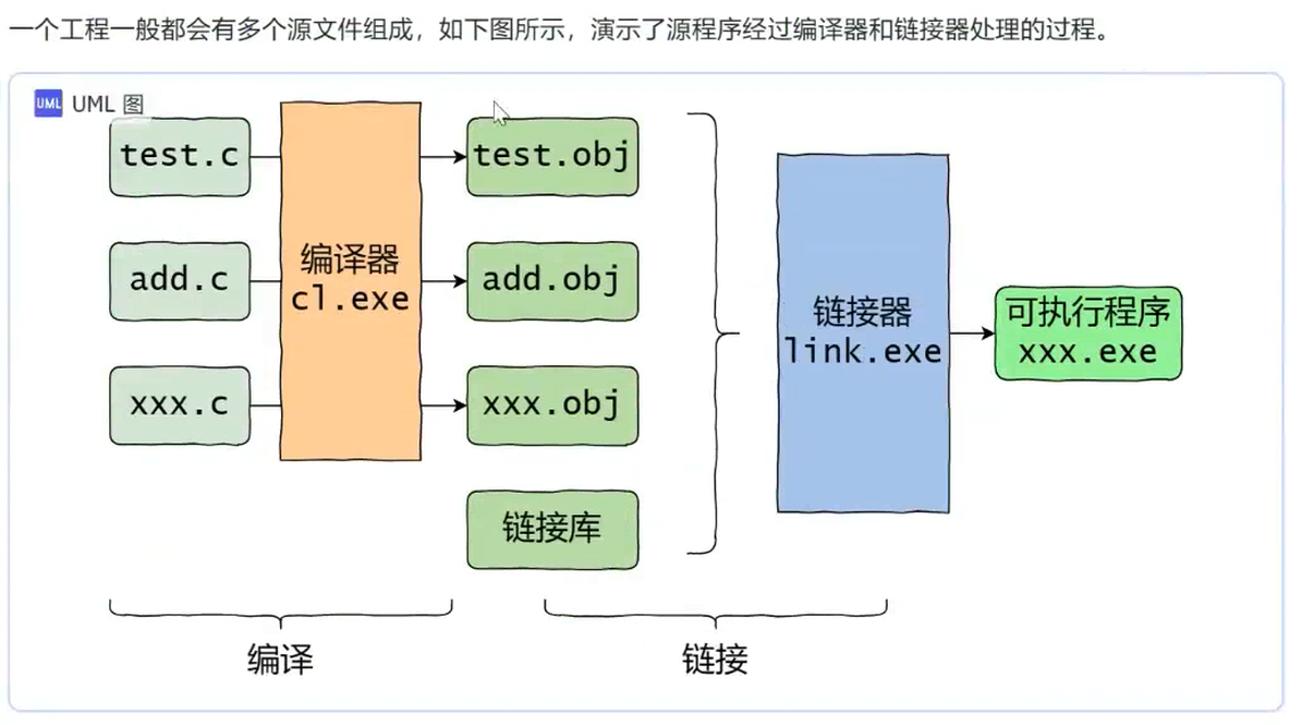 C语言源文件是文本文件,经过编译器编译生成二进制的可执行程序(.exe)