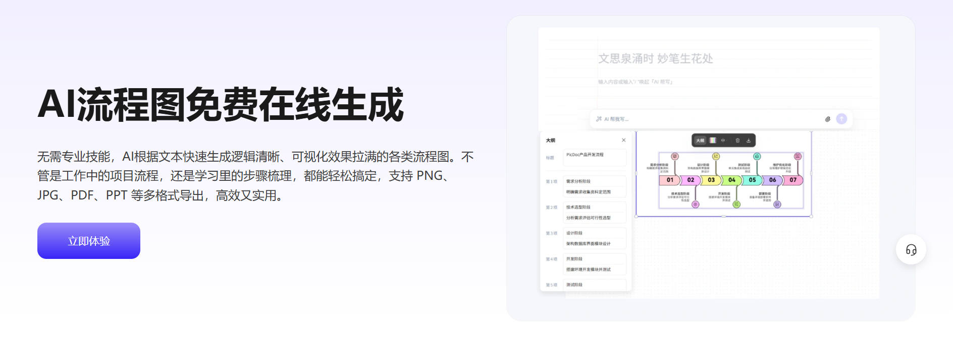 但很多人卡在“不会设计”“工具太复杂”上,其实选对AI工具就能轻松解决。比如PicDoc在线工具,无需任何设计技能,只要输入文本描述,就能自动生成简单可用的流程图,还支持直接下载使用,完全适配新手的核心需求。
