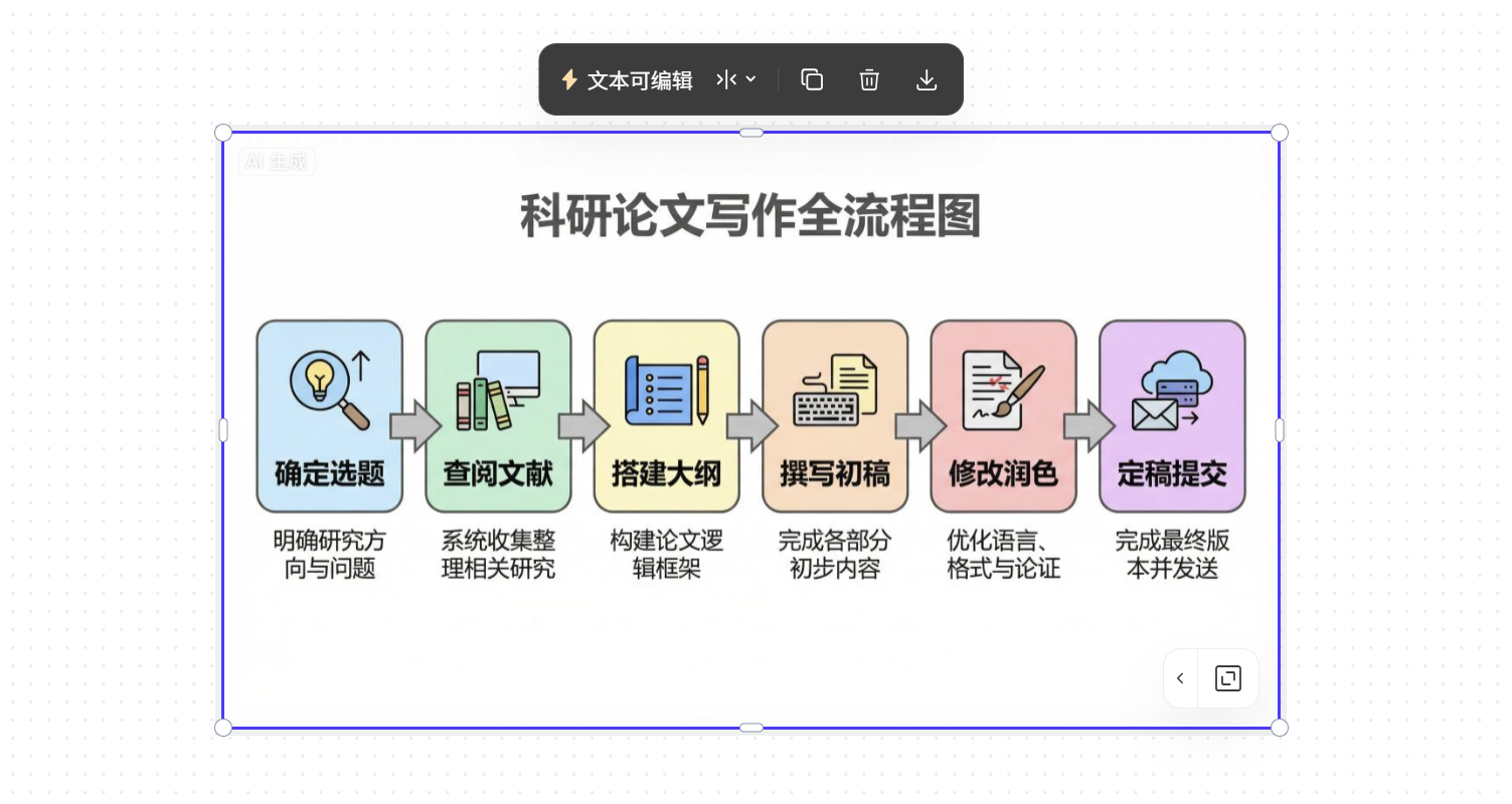 错误3:生成后不做任何检查。有时AI生成的流程图可能描述不完整,或文本与节点重合,直接使用会影响阅读体验。