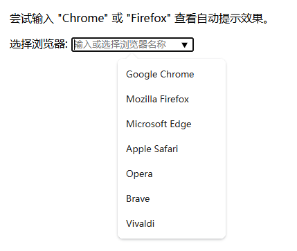 <select>不同) - 浏览器会自动根据输入过滤匹配项