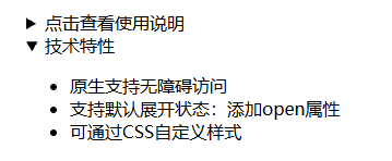 open属性可默认展开:<details open> - 可通过 CSS 的