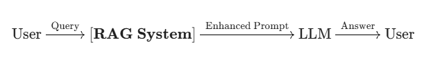 位置: RAG 处于 用户 (User) 和 大模型 (LLM) 之间。它是一个 中间层 或 预处理层。