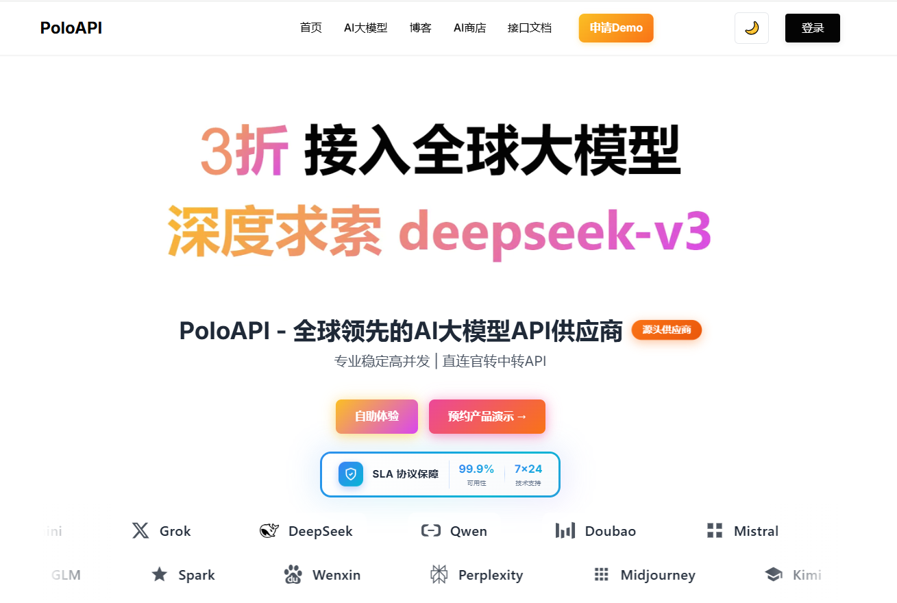 如果你在接入过程中遇到性能瓶颈,或需要一个 稳定可靠 的 API 接入平台,不妨试试 PoloAPI.top,它的 低延迟、高并发支持 和 便捷的 API 管理 能够帮助你轻松应对各种挑战。