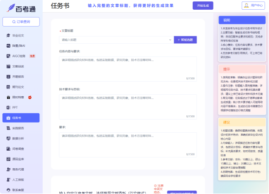 百考通AI任务书功能:智能生成贴合你研究方向的专业任务书,规范高效一步到位