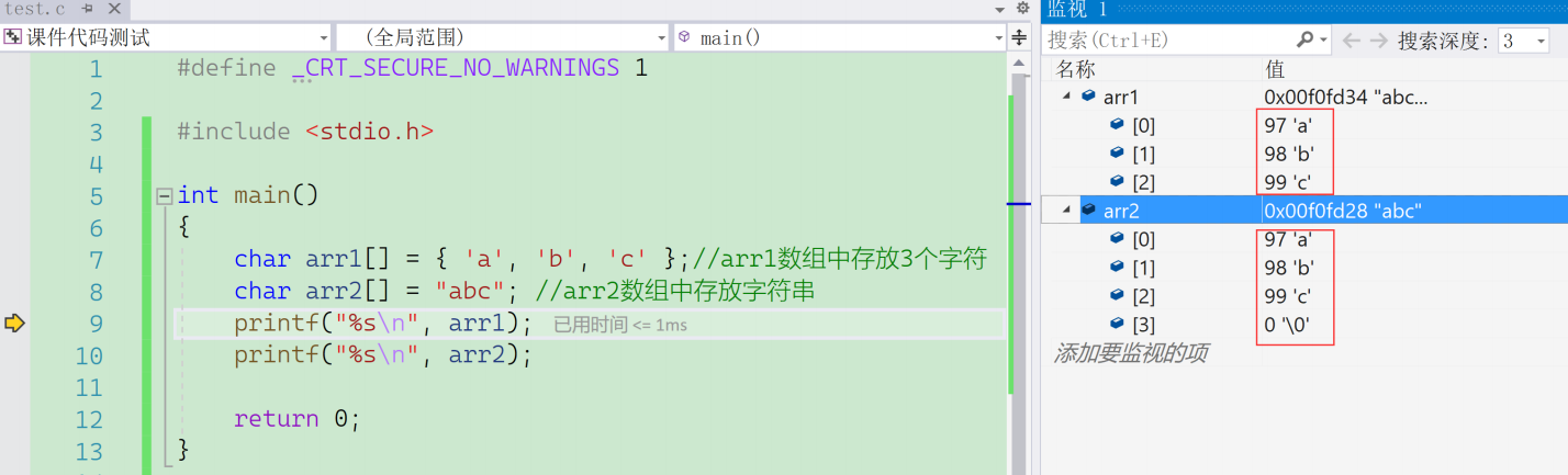 char arr2[] = "abc"; //arr2数组中存放字符串