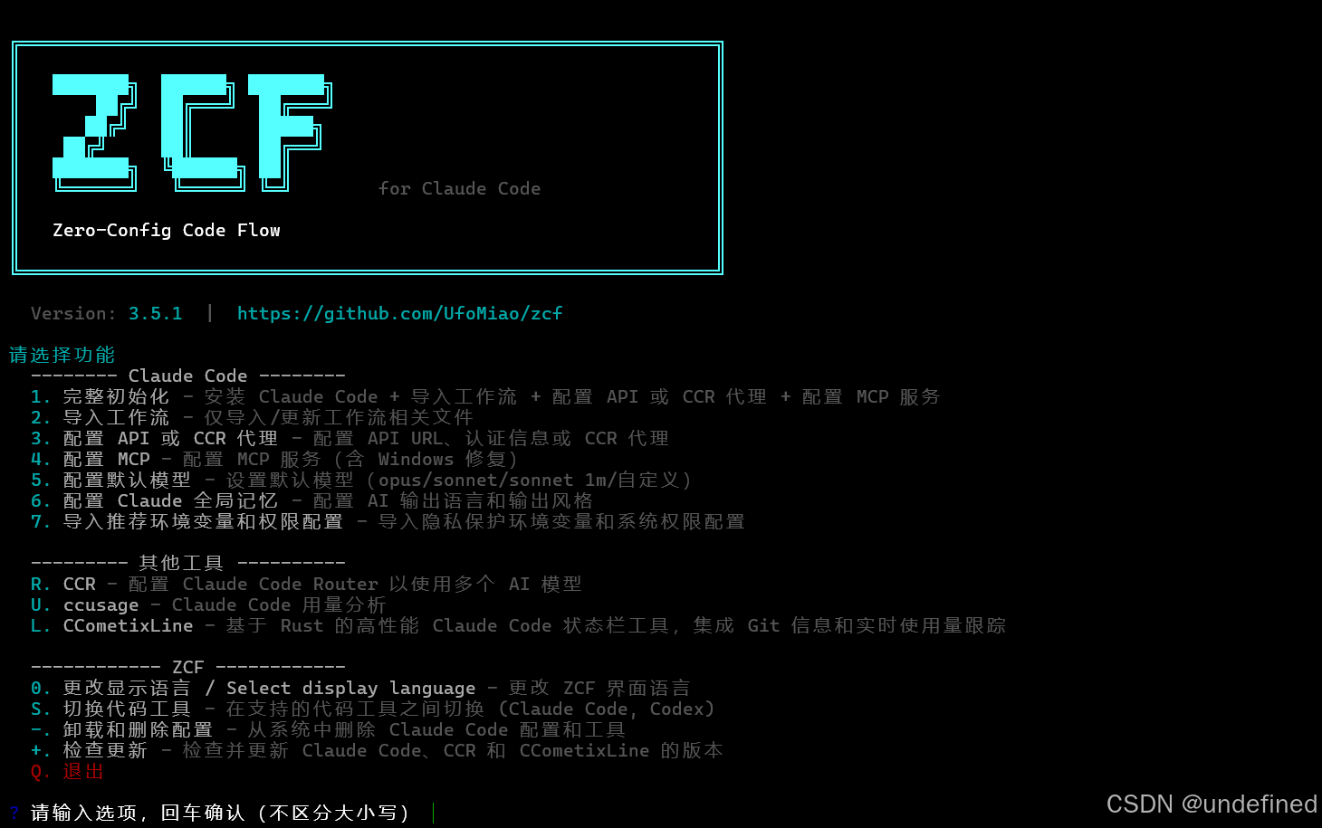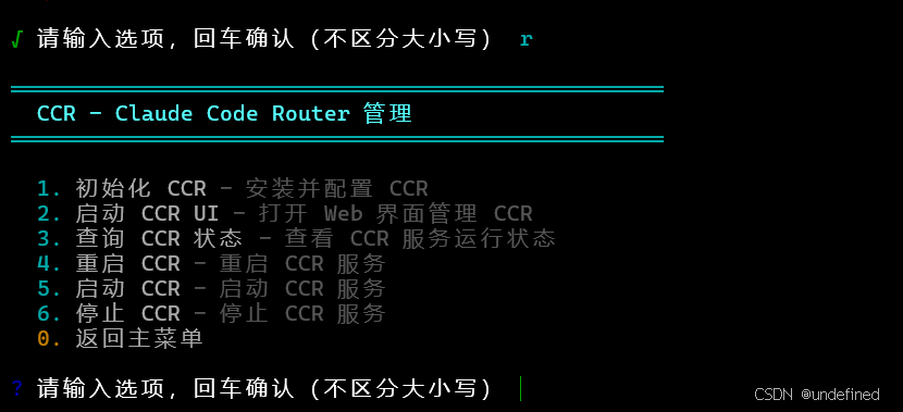 那么到了这一步,我们的ZCF就可以关掉了。这个时候我们只需要输入CCR code就可以启动我们的claude code了。