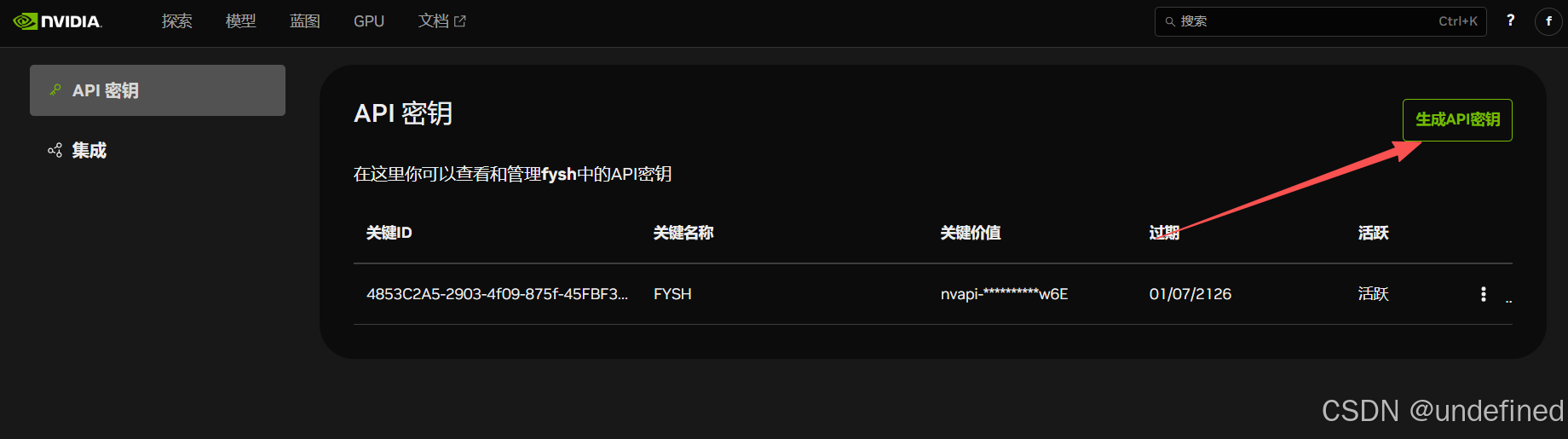 第三步:生成 API Key