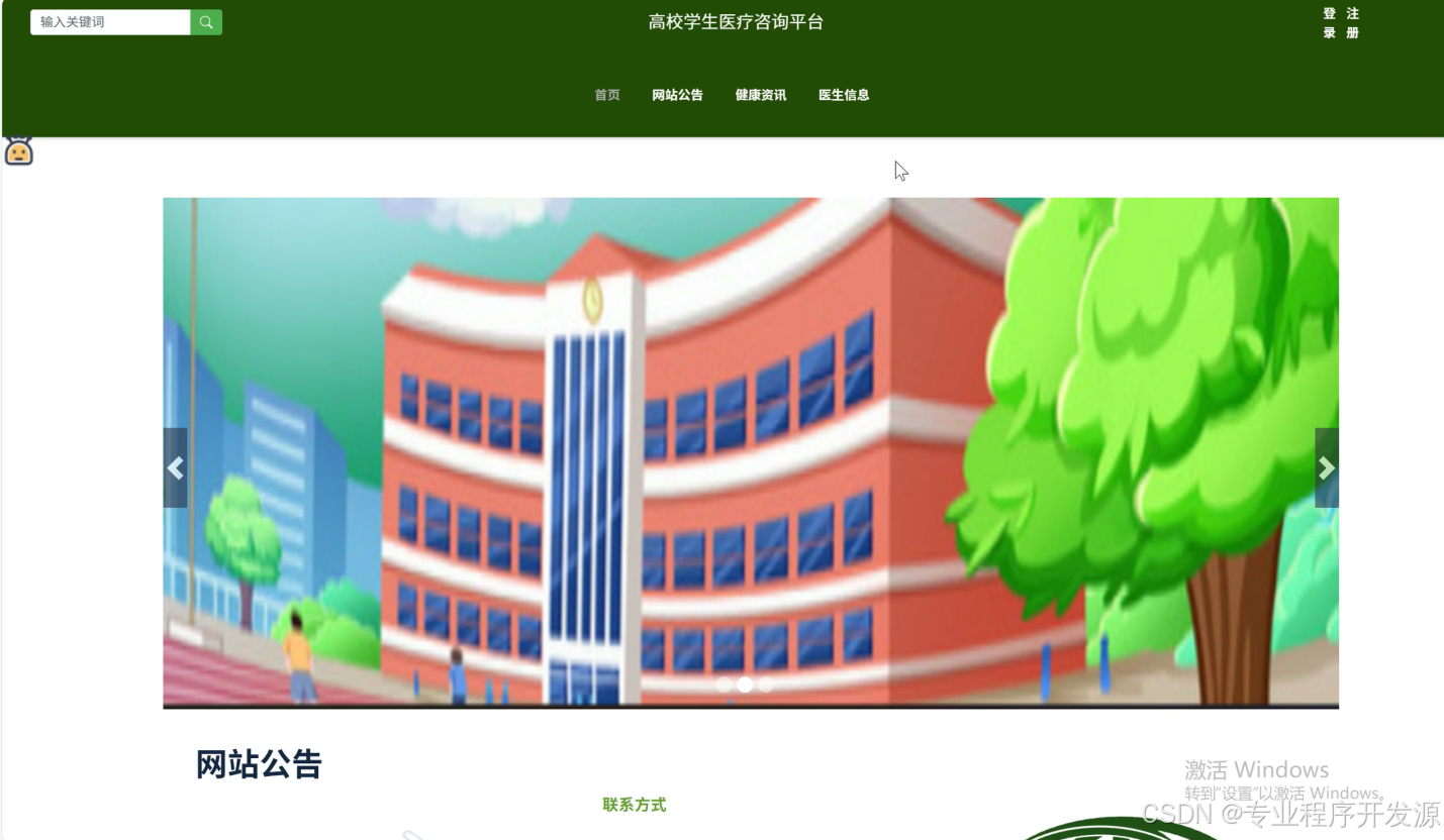 首页:提供快速导航链接,如最新医疗动态、热门健康资讯推荐等,便于学生快速了解平台状态和获取健康信息。