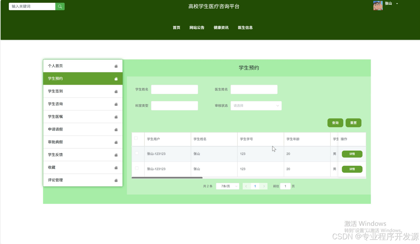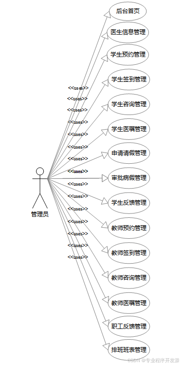学生预约管理:从系统层面监督学生预约流程,处理异常预约情况,统计分析学生预约数据,为优化医疗资源配置提供依据。