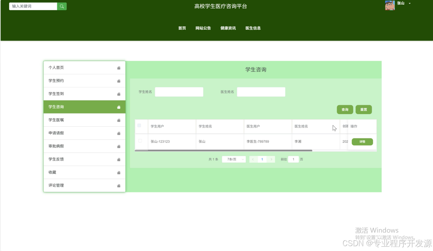 在高校医疗服务需求日益增长的背景下,传统医疗咨询方式的便捷性与高效性不足问题愈发显著,高校学生医疗咨询平台顺势而生。本平台基于 Java 语言开发,采用 Spring Boot 框架构建后端逻辑,利用 MySQL 数据库存储数据,借助前后端分离架构提升系统性能与可维护性。