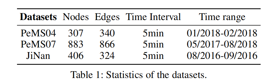 为全面评估所提出模型的预测性能,本文在多个真实交通流数据集上进行了系统实验。所使用的数据集涵盖不同规模和结构的交通网络,能够反映多样化的交通运行场景。各数据集均按照统一的时间间隔采样,并包含连续的历史交通流观测序列。